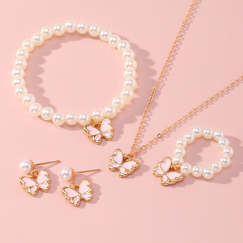This jewelry set includes a necklace, bracelet, and earrings made from alloy with a butterfly, dragonfly, and insect patterns. Designed in a princess style, it features fresh and sweet aesthetics, perfect for adding elegance to any outfit.