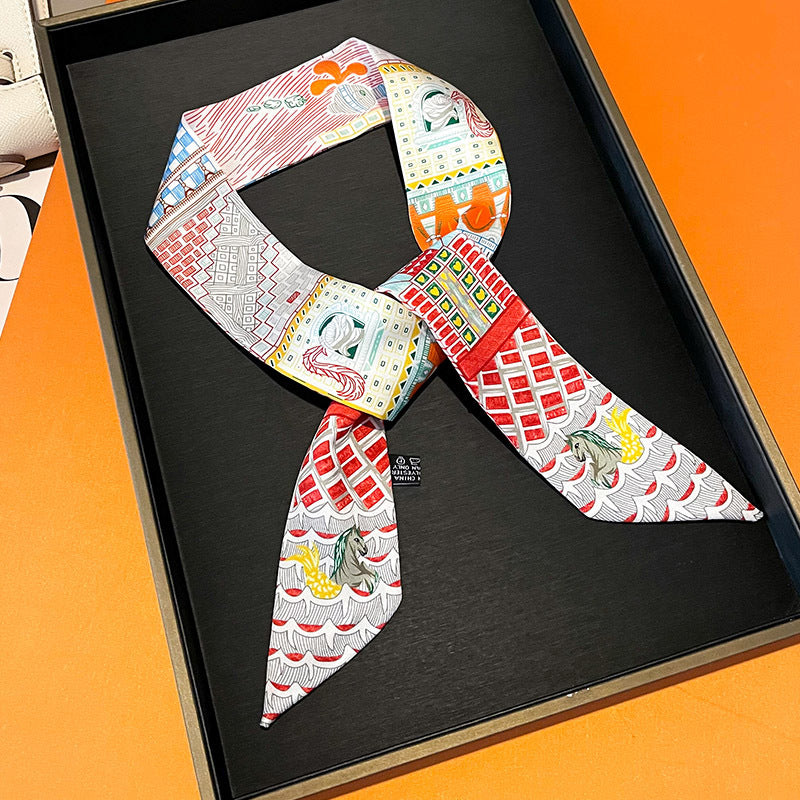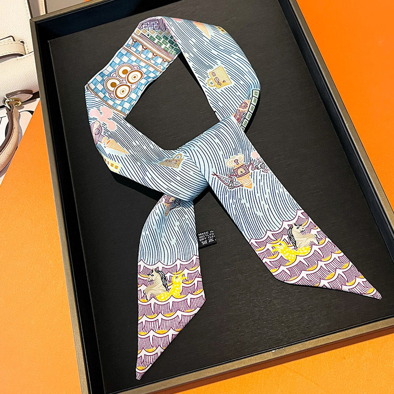 Esta elegante bufanda con lazo es un complemento chic para cualquier look. Hecha de sarga de alta calidad, presenta un estampado geométrico perfecto para quienes buscan estilo. Disponible en varios colores, este versátil accesorio realzará tu estilo sin esfuerzo.