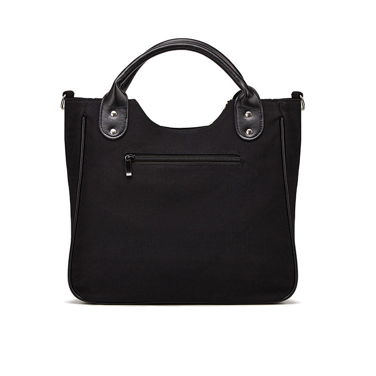 Fabricada en lona de alta calidad con forro de piel de melocotón, esta bolsa tipo cubo mide 36 x 14 x 40 centímetros y ofrece amplio espacio para tus artículos esenciales de diario. Su dureza moderada garantiza durabilidad y mantiene su forma.