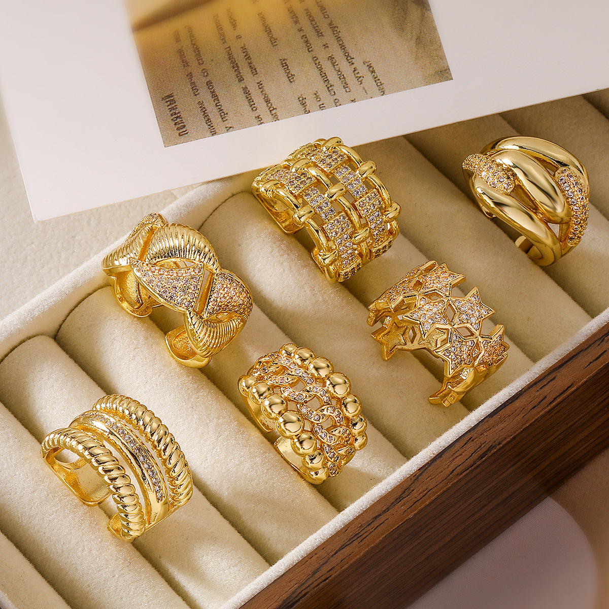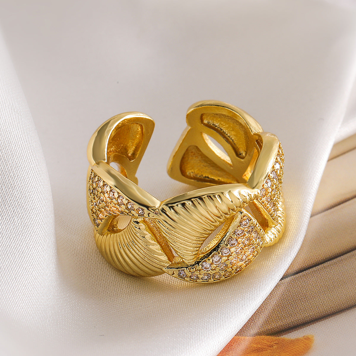 Anillo de oro chapado en cobre irregular de moda para mujer