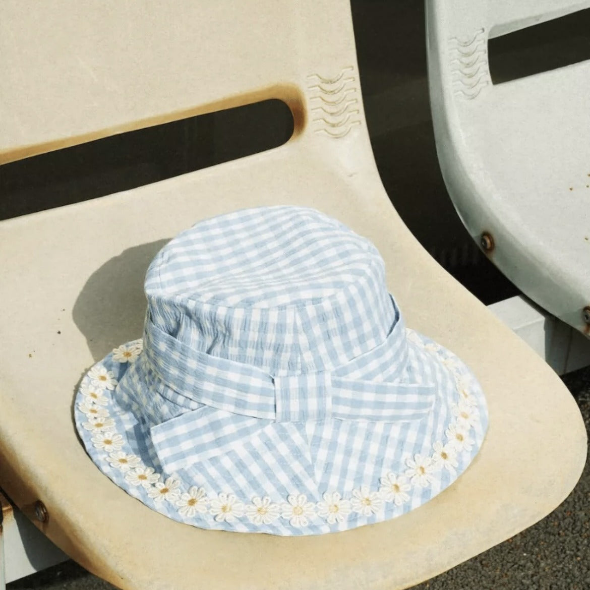 Sombreros tipo cubo con protección solar y lazo a cuadros para mujer