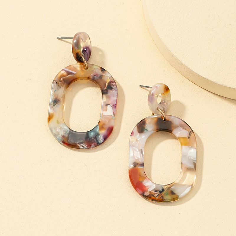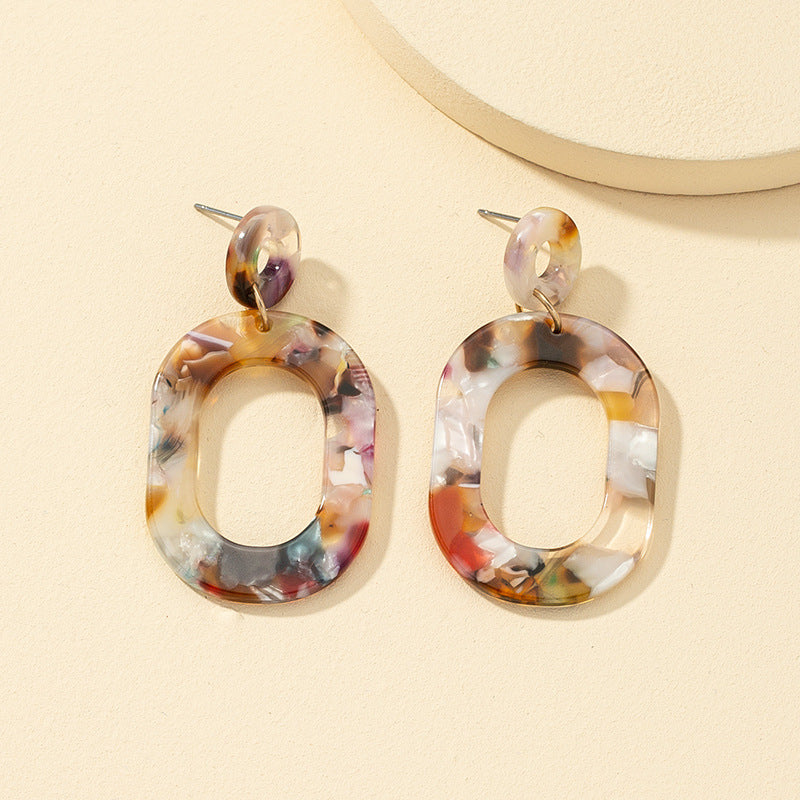 Women Fashion Retro Resin Geometric Multicolor Earrings