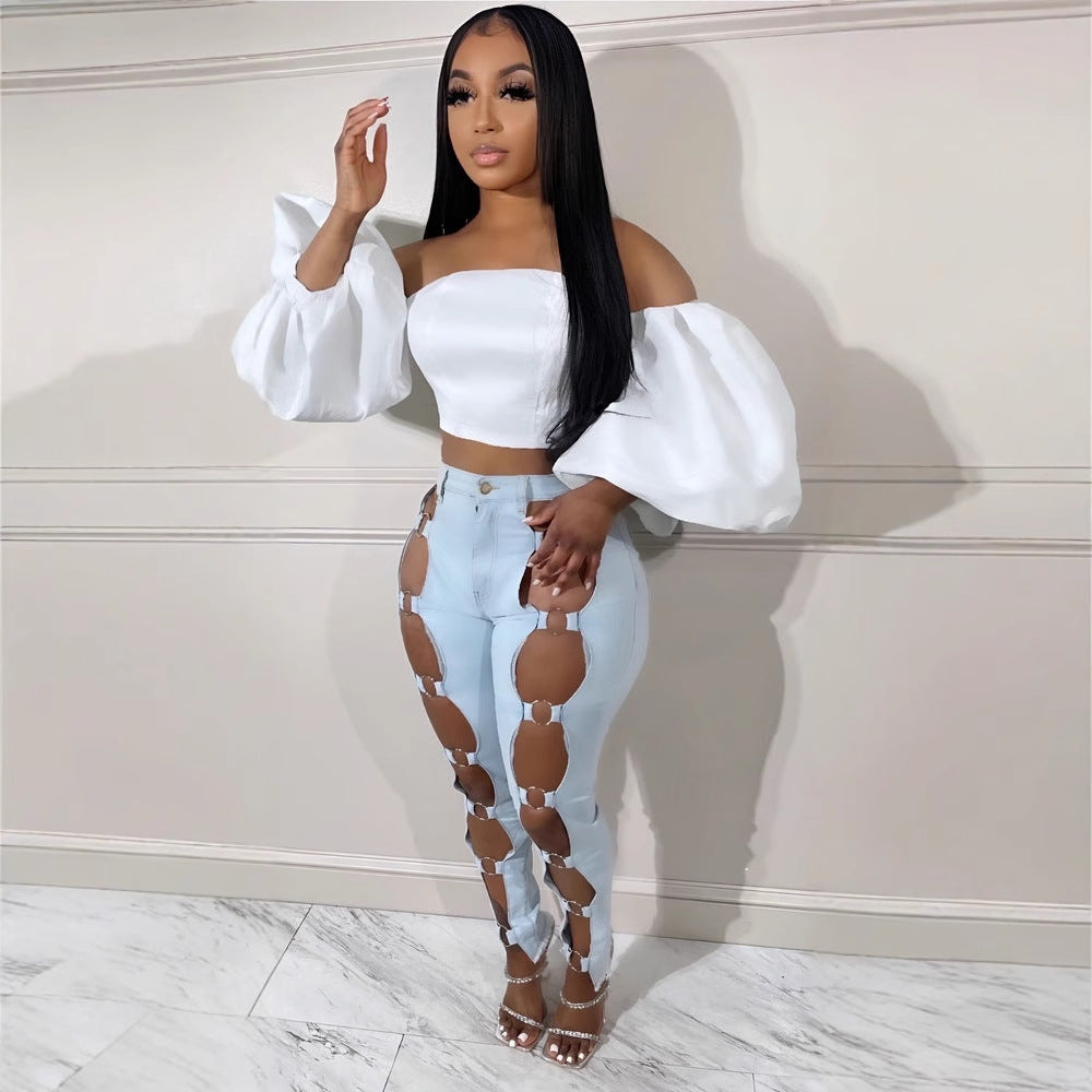 Estos elegantes pantalones vaqueros pitillo presentan un diseño calado y están confeccionados en una cómoda mezcla de algodón y poliéster. Con un corte a media cintura y una ligera elasticidad, ofrecen un look moderno y favorecedor, ideal para la calle y ocasiones informales.