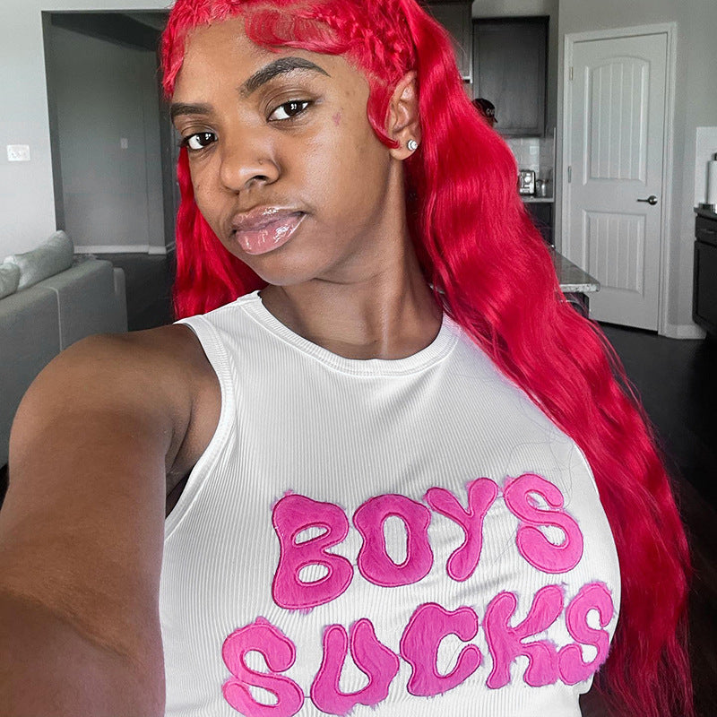 Women Fashion Sexy Letter Printed Short-Sleeve Crop Top