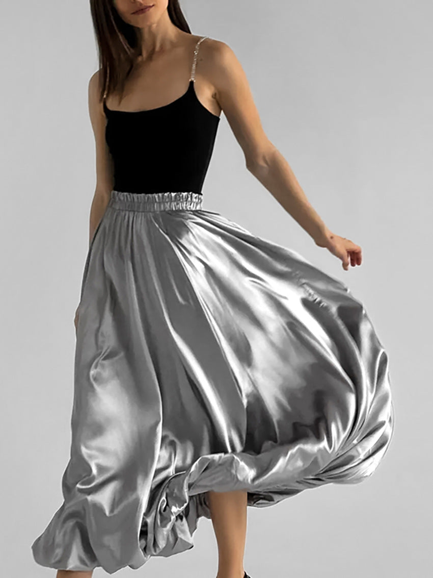 Falda plisada de satén informal sencilla de moda para mujer
