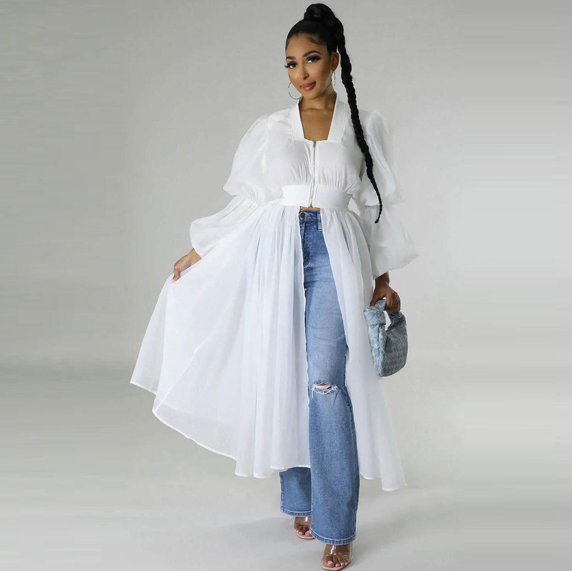 Este elegante vestido de malla de manga larga está confeccionado en gasa ligera con un diseño de color liso, lo que proporciona un ajuste cómodo y un estilo versátil. Disponible en negro, verde claro y blanco, presenta cintura alta y falda oversize para una silueta moderna, ideal para diversas ocasiones.