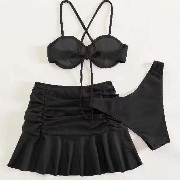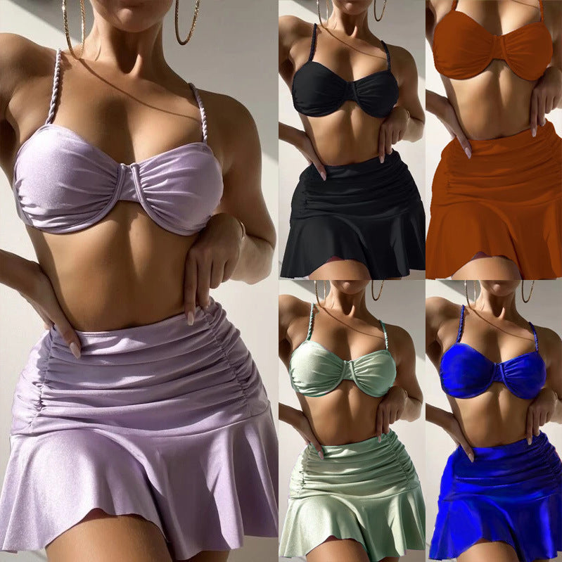 Conjunto de traje de baño plisado de color sólido de moda para mujer