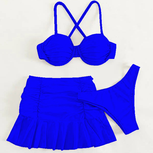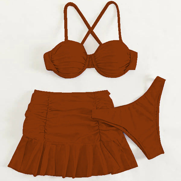 Explora el estilo y la comodidad con nuestro conjunto de tres piezas de traje de baño plisado de color liso para mujer. Este elegante traje de baño es perfecto para días de piscina o salidas a la playa, con un impresionante diseño de color liso y un favorecedor estilo plisado. Fabricado con 82 % de nailon, ofrece durabilidad y un ajuste cómodo.