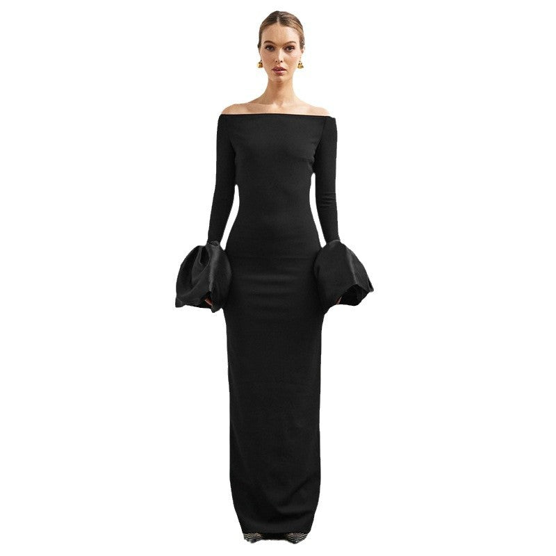 Vestido maxi ajustado de manga larga con hombros descubiertos para mujer