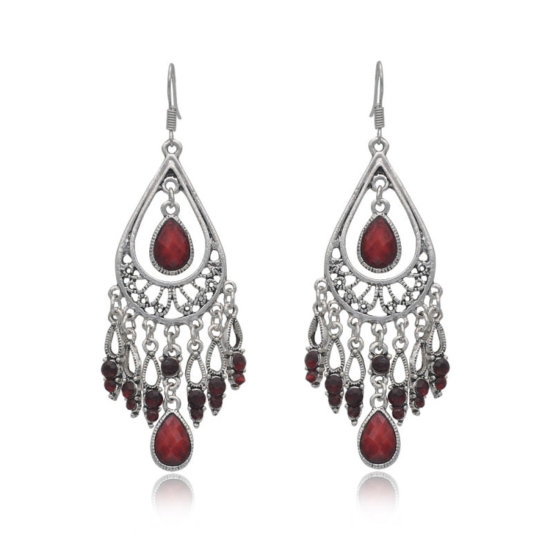 Descubre el encanto de nuestros pendientes bohemios retro multicolores con borlas de piedras preciosas incrustadas, elaborados con un exquisito estilo vintage. Estos impresionantes pendientes son el complemento perfecto para cualquier colección de joyería bohemia y están diseñados para destacar dondequiera que vayas.