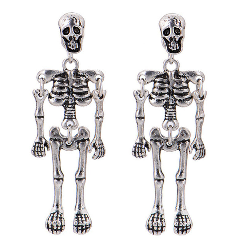Pendientes creativos vintage de aleación con esqueleto de Halloween para mujer
