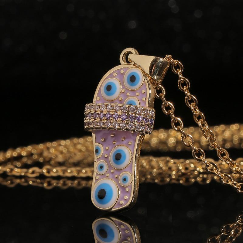 Collar con colgante de zapatilla de ojo malvado para mujer
