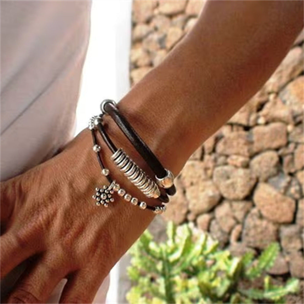 Notre superbe bracelet bohème simple à pendentif floral en alliage pour femme capture l'essence du charme vintage et de l'élégance artistique. Ce magnifique bijou bohème sublimera n'importe quelle tenue, un accessoire indispensable pour celles qui aiment la mode unique et expressive.