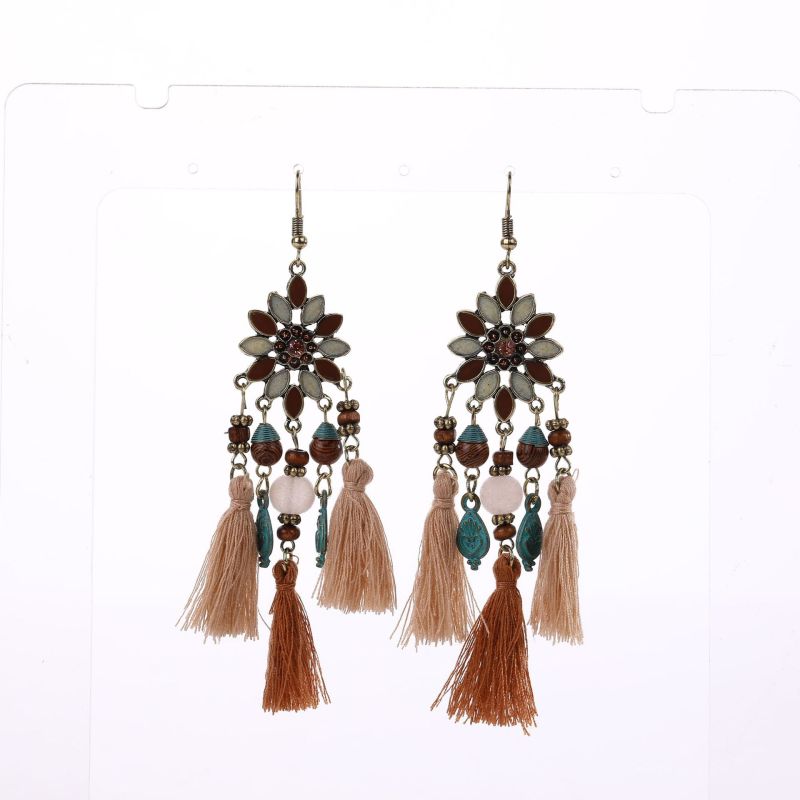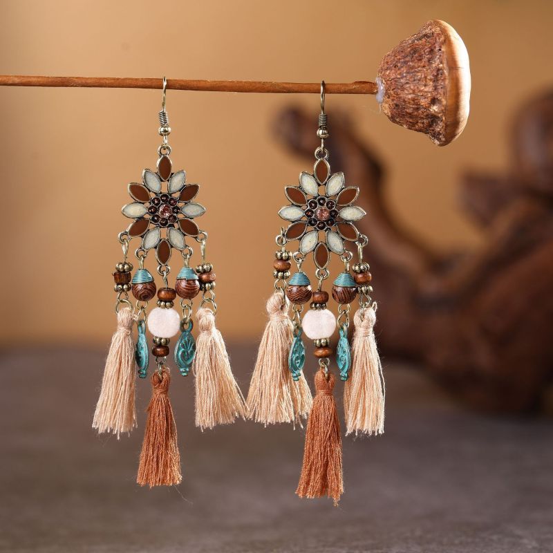 Sublimez votre collection d'accessoires avec ces superbes boucles d'oreilles bohèmes à pampilles et perles en bois. Confectionnées avec soin, ces boucles d'oreilles uniques incarnent l'essence même des bijoux bohèmes, avec leur délicate association de perles en bois colorées et de pampilles élégantes. Parfaites pour ajouter une touche d'exotisme à n'importe quelle tenue, elles sont conçues pour vous démarquer.