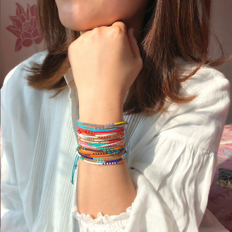 Ce magnifique bracelet bohème est plus qu'un simple accessoire ; c'est une déclaration d'individualité et de style. Confectionné à partir de matériaux de haute qualité, ses perles éclatantes le rendent parfait à superposer ou à porter seul. Affirmez votre côté libre avec ce bijou bohème incontournable qui complètera toutes vos tenues.