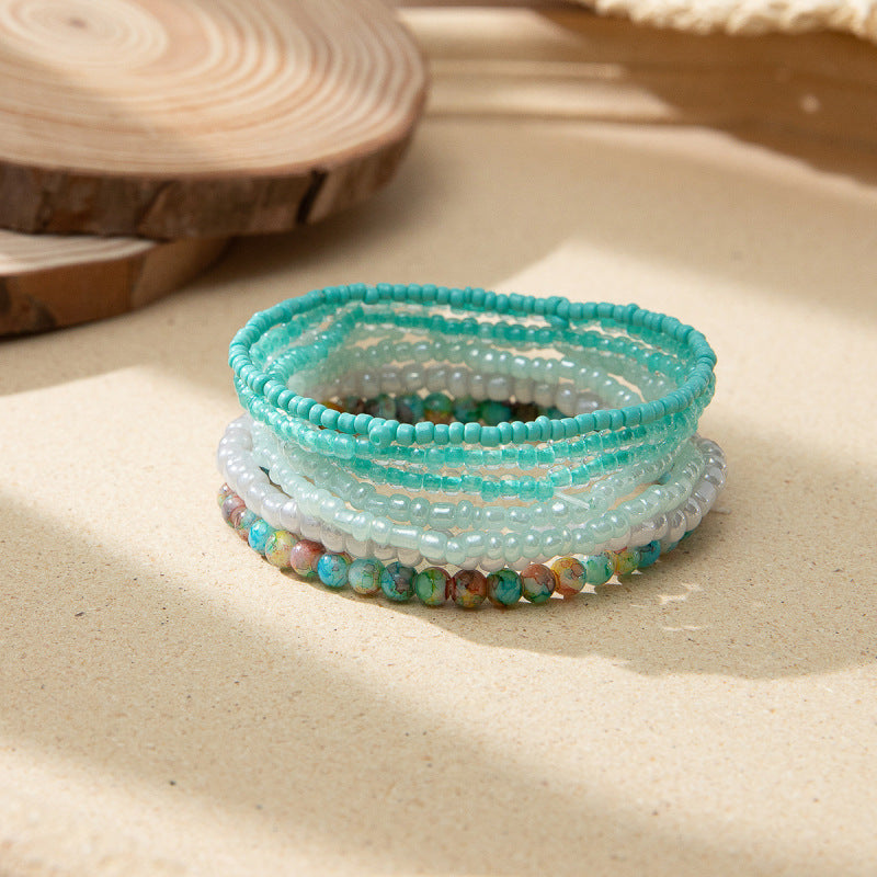 Ensemble de bracelets bohèmes extensibles multicolores en perles de riz
