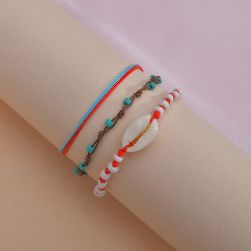 Ensemble de bracelets de cheville bohèmes multicouches en perles de coquillage