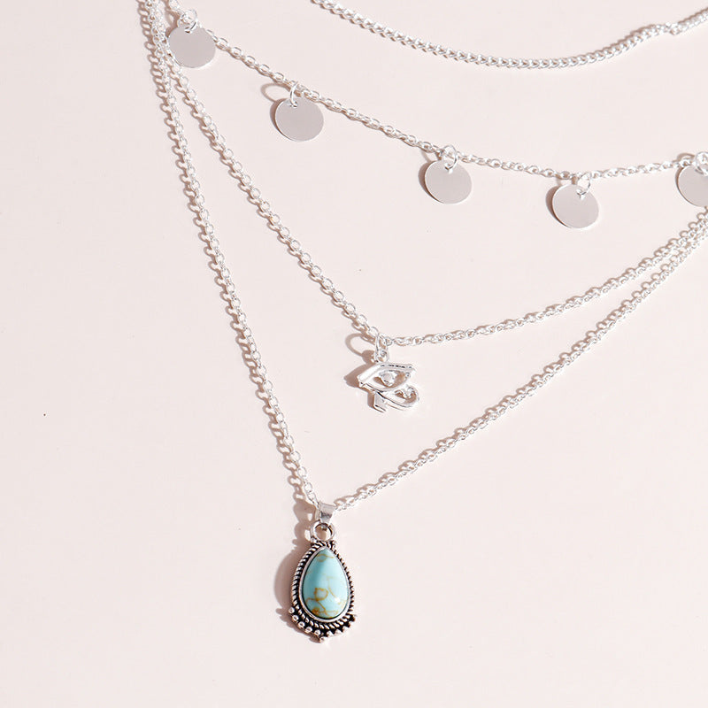 Collier à pampilles œil porte-bonheur en turquoise de Bohème