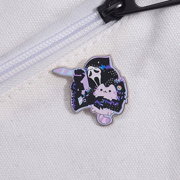 Broche en forme de chaton tenant un fantôme de dessin animé pour Halloween