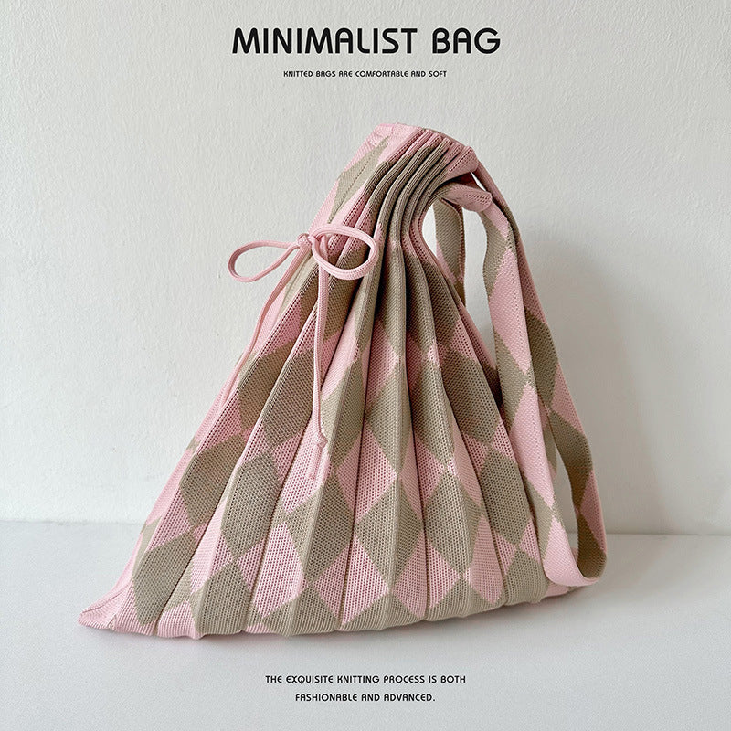 Colorful Plaid Simple Folded Knit Shoulder Bag