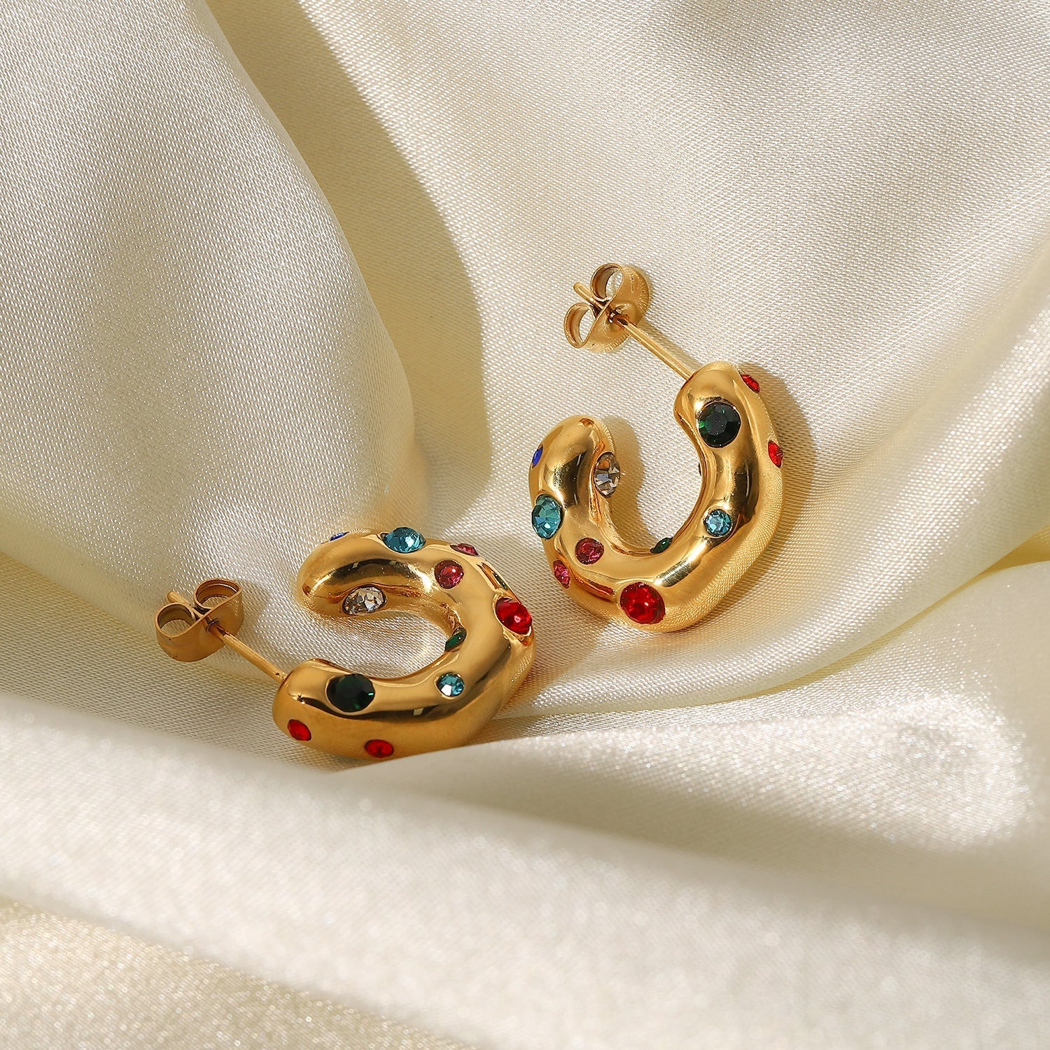 Colorful Zircon Pearl C-Shaped Stud Earrings