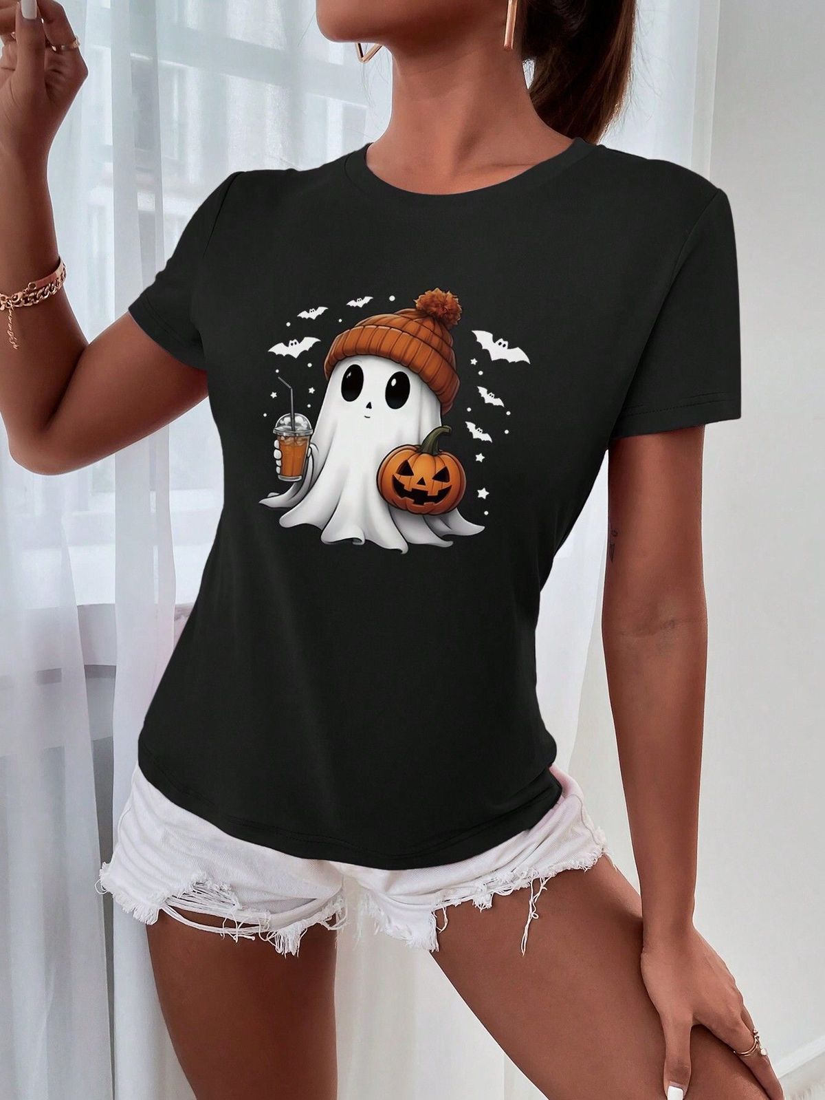T-shirt ras du cou à manches courtes et motif citrouille d'Halloween