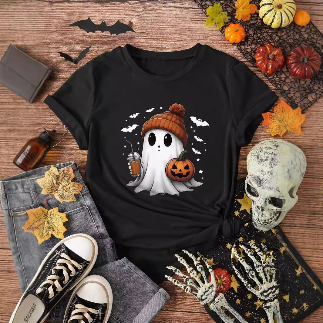 Design : Col ras du cou classique et manches courtes classiques, idéal pour un style streetwear décontracté. L'imprimé citrouille ajoute une touche festive pour Halloween ou les événements à thème.