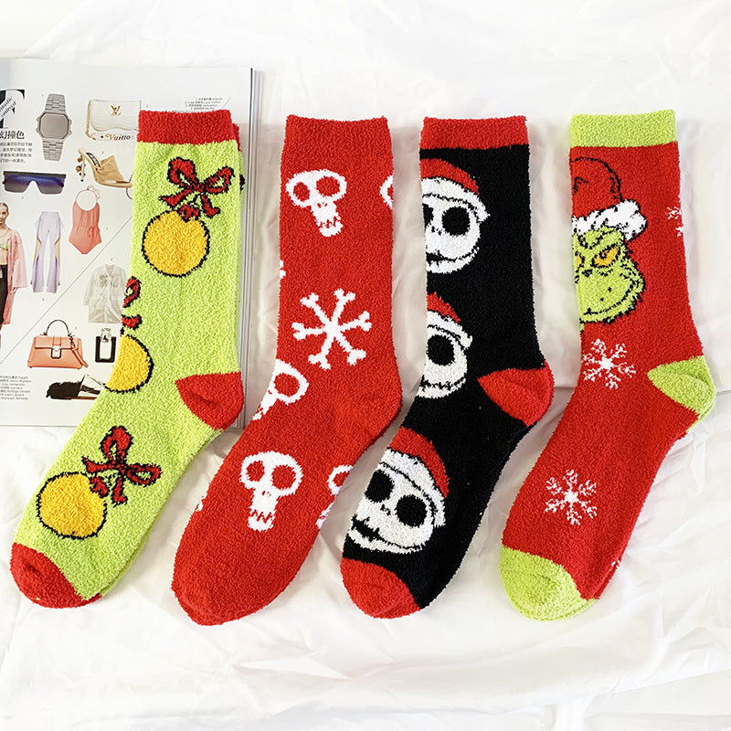 Chaussettes chaudes en polaire corail à motif dessin animé pour Noël et Halloween