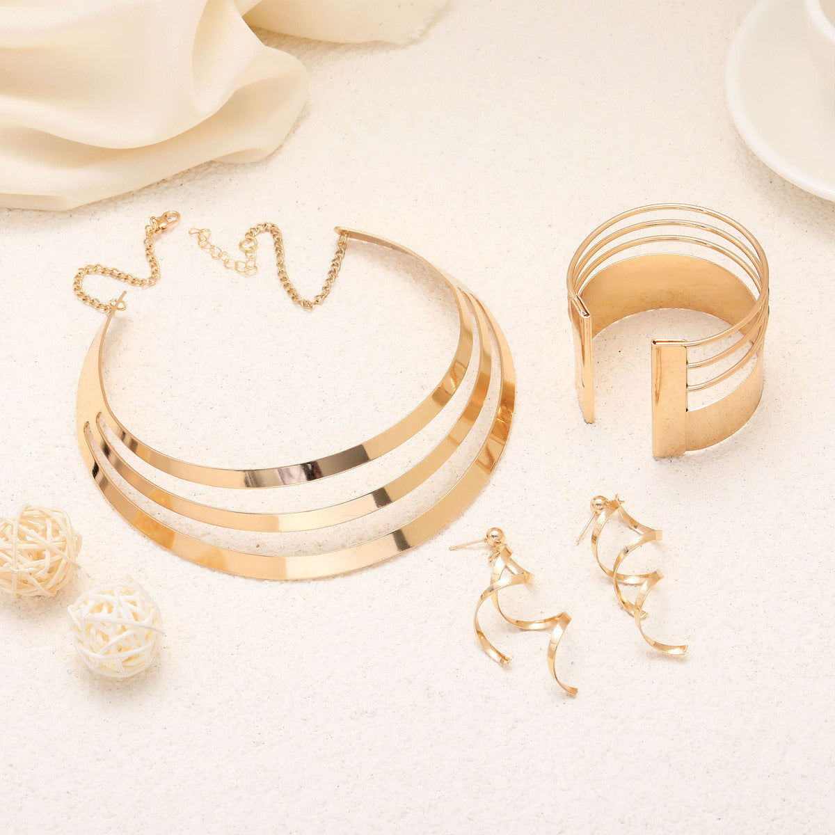 Sublimez vos accessoires avec cette superbe parure de bijoux tendance en métal. Conçue pour la femme moderne, cette parure arbore une élégante chaîne en O qui s'harmonise avec toutes vos tenues tout en révélant votre personnalité unique. Disponible en argent élégant et en or luxueux, cette parure ajoute une touche de sophistication à votre look.
