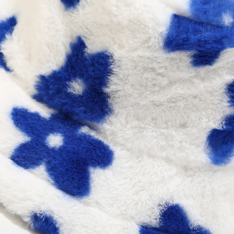 Floral Plattern Plush Winter Bucket Hats