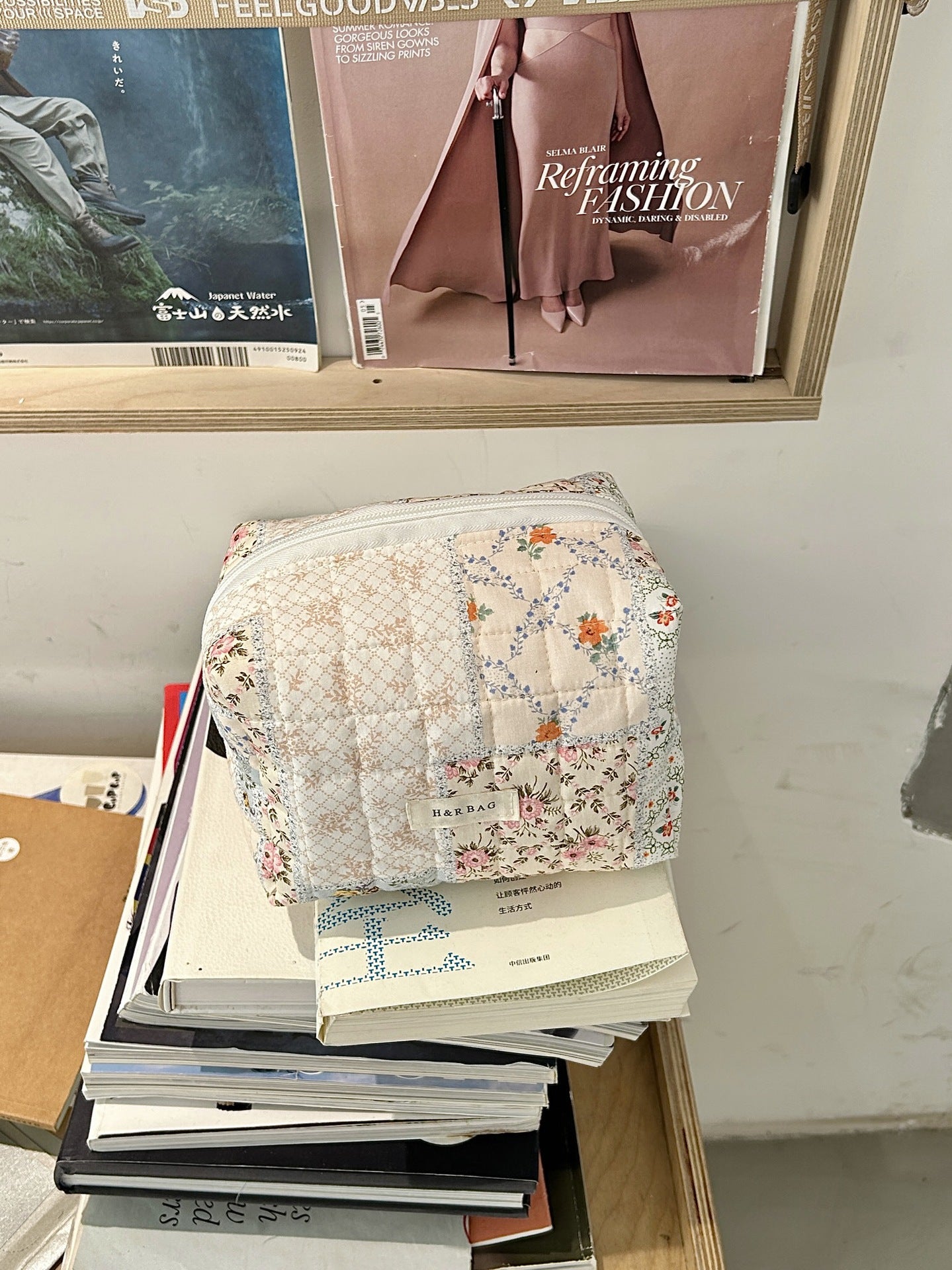 Floral Print Plaid Portable Cosmetic Bag