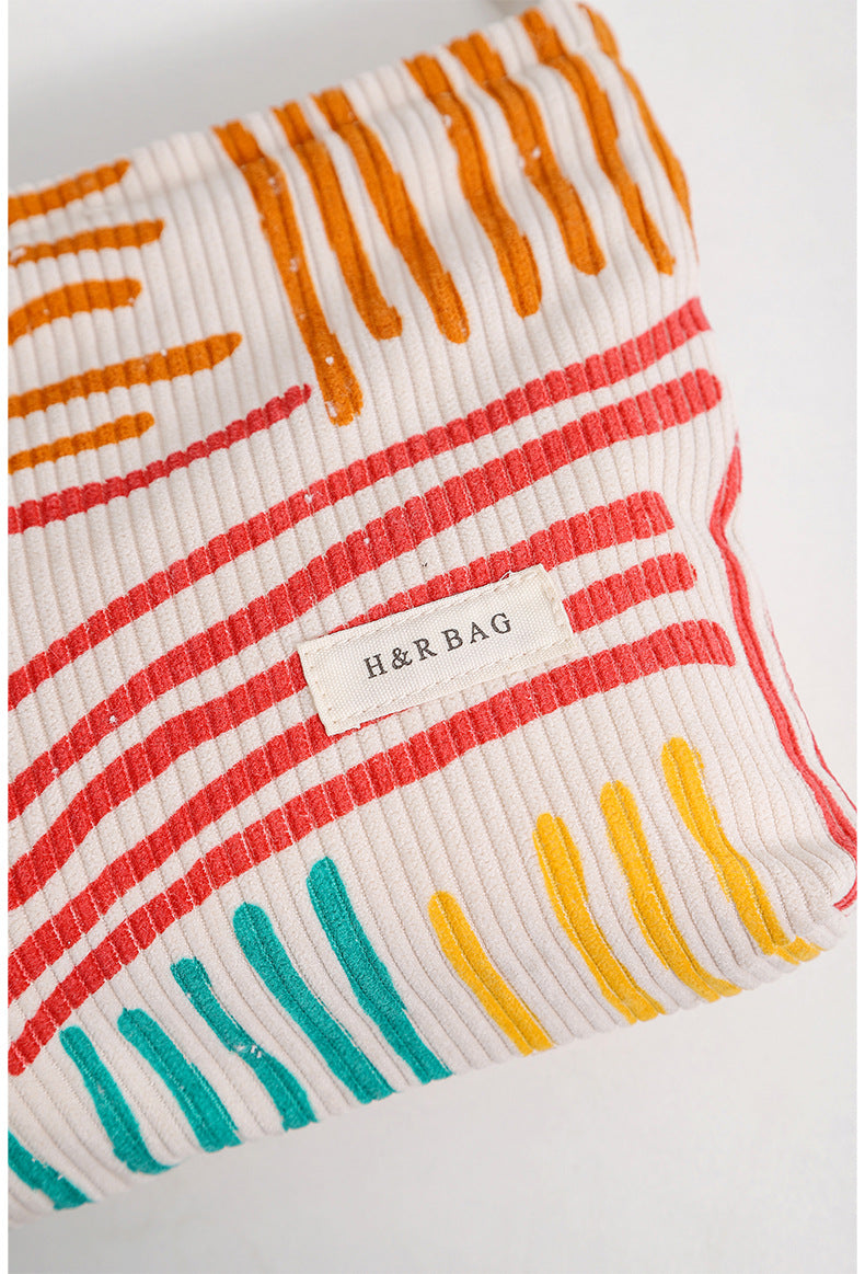 Floral Sreipe Corduroy Portable Cosmetic Bag
