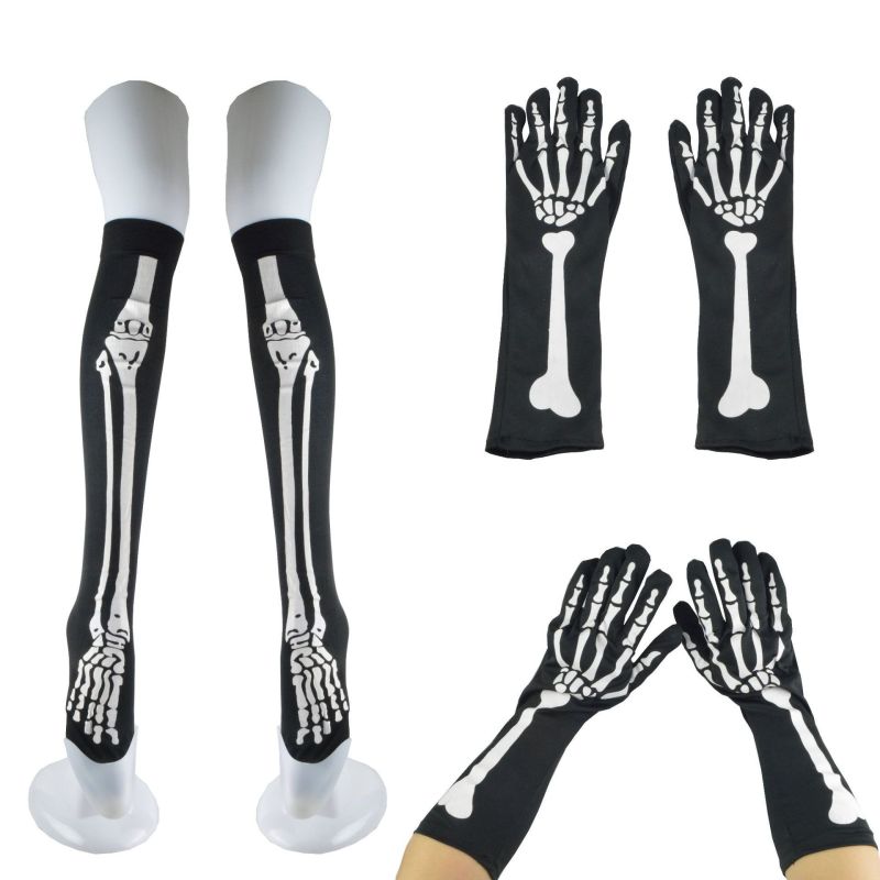 Ensemble gants et bas en os de crâne pour Halloween Cosplay