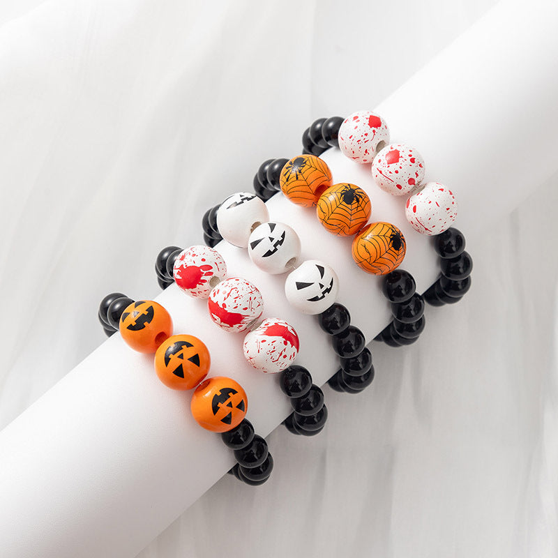Bracelet de perles d'Halloween avec citrouille et crâne de dessin animé