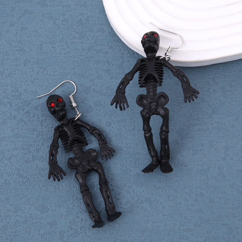 Boucles d'oreilles squelette en résine exagérées pour femmes, mode Halloween
