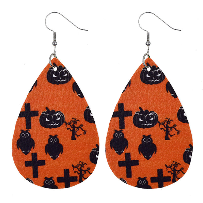 Boucles d'oreilles citrouille araignée en cuir pour femme Halloween