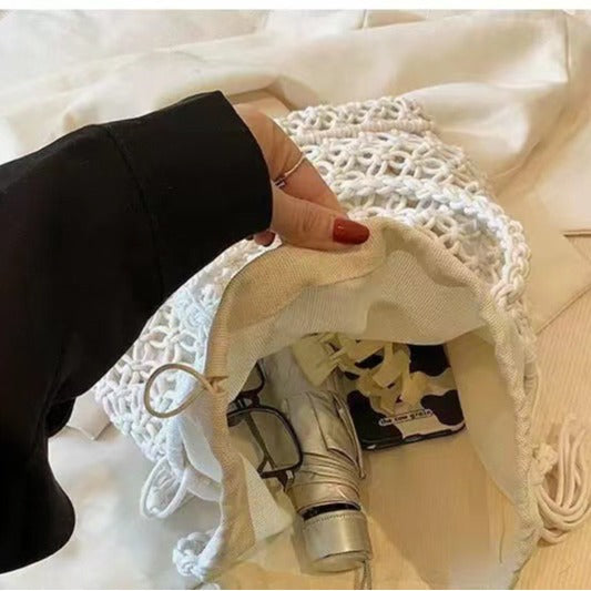 Hollow Out Tassel Woven Beach Shoulder Bag
