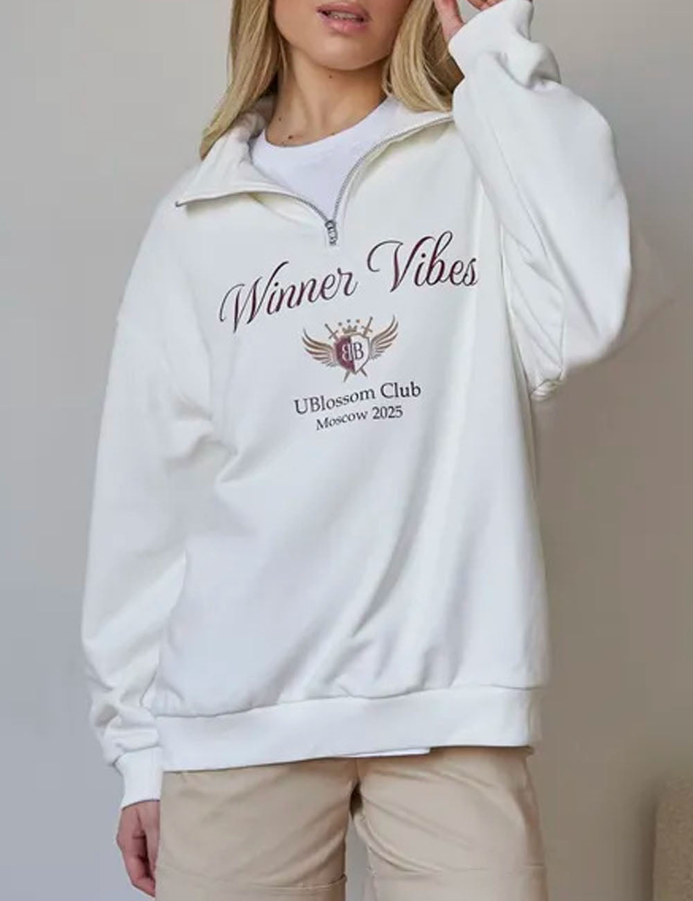 Letter Print Lapel Collar Half Zip Sweatshirt