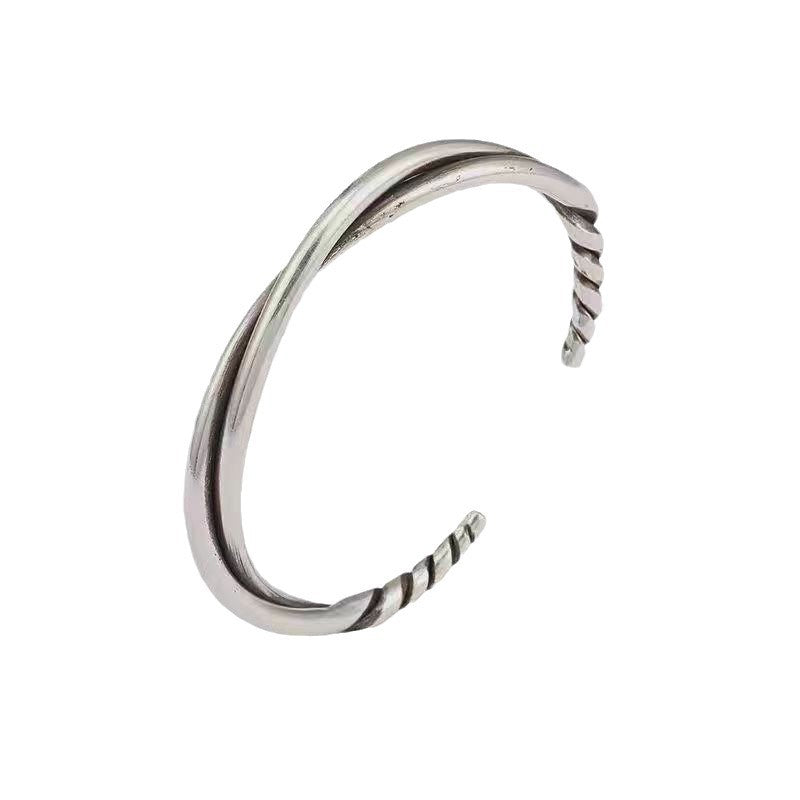 This men's bracelet features a sleek twist design crafted from durable alloy, combining minimalist geometry with a fashionable touch. It is suitable for everyday wear and complements various styles with its modern aesthetic.