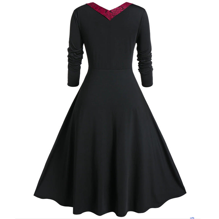 Cette robe gothique grande taille arbore une dentelle raffinée et un design sophistiqué, parfaite pour les occasions élégantes. Confectionnée en fibre de polyester résistante, elle offre confort et style avec sa taille haute et ses manches longues. Disponible en vert et rouge, elle s'adapte à toutes les occasions.