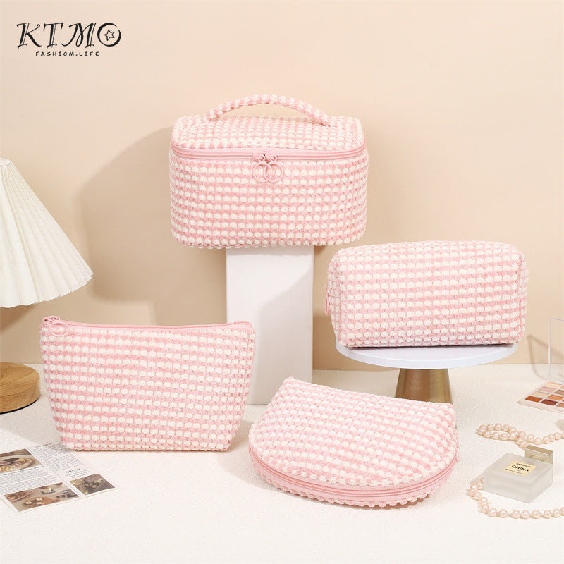 Trousse de toilette portable en flanelle à carreaux pour les voyages