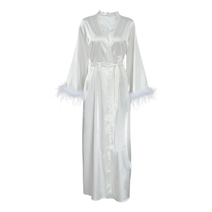 Sexy Feather Waist Tie Homewear Dress