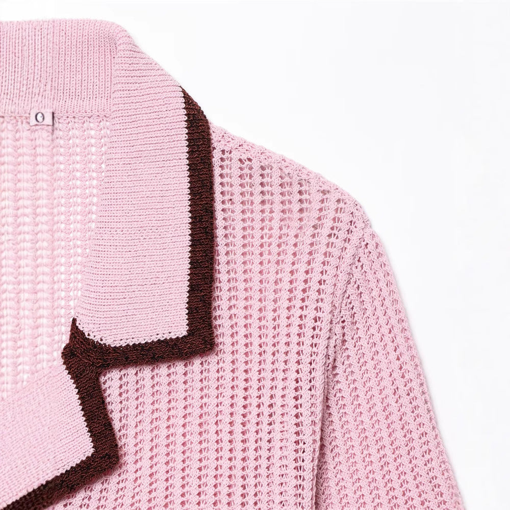 Simple Knitted Collared Top and Shorts Set