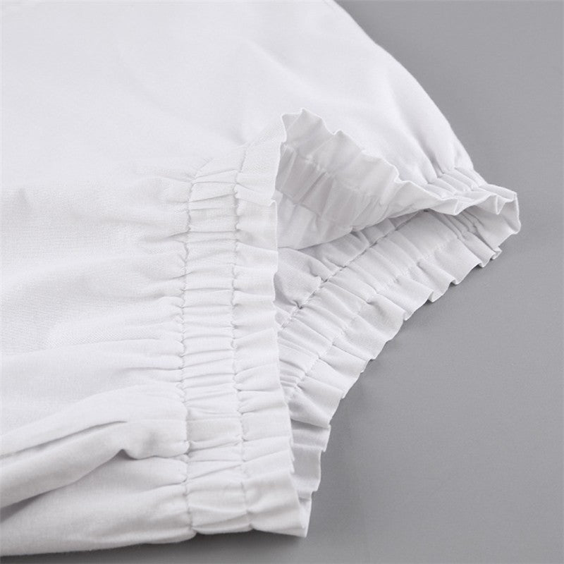 Solid Color Long Sleeve Top With Ruffle Hem Shorts Set