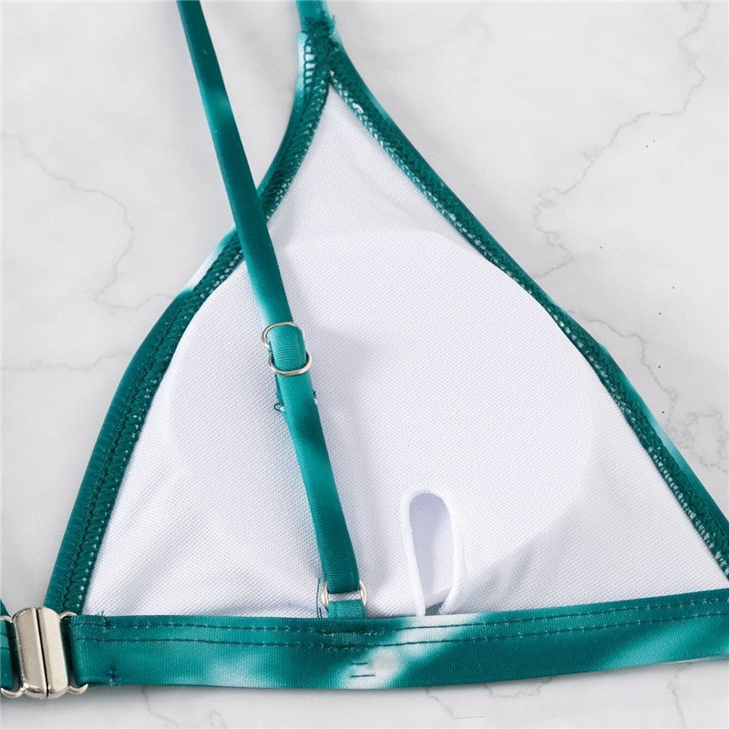 Split Three Piece Tie-Dye Printed Bikini Swimsuit