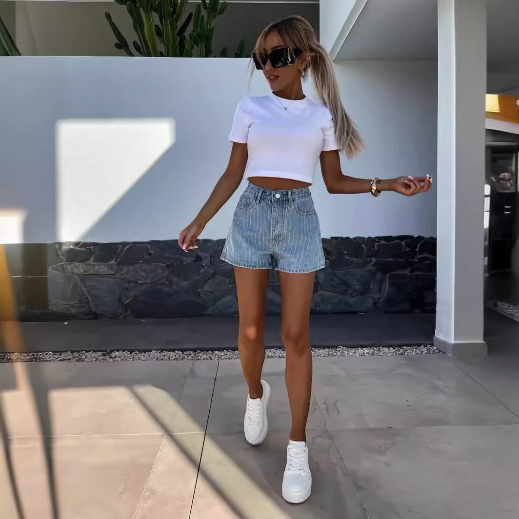 Short en jean à strass pour femme, style streetwear, élégant et décontracté