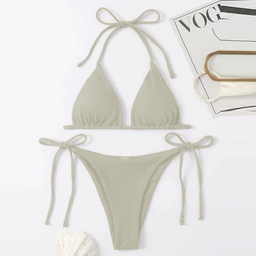 Ensemble bikini sexy à bretelles pour femme, couleur unie, été