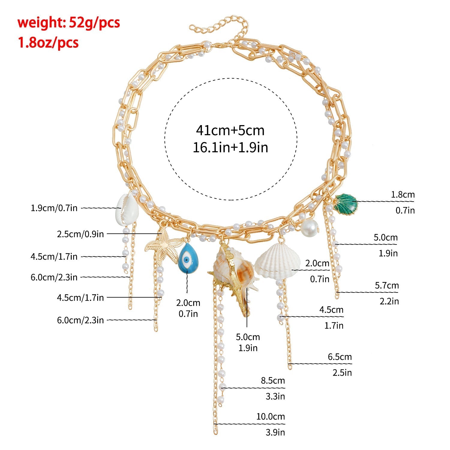Trendy Starfish Shell Pearl Tassel Choker Necklace