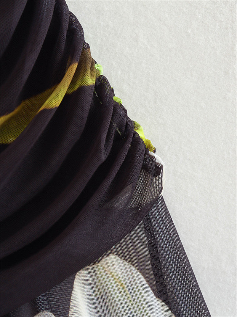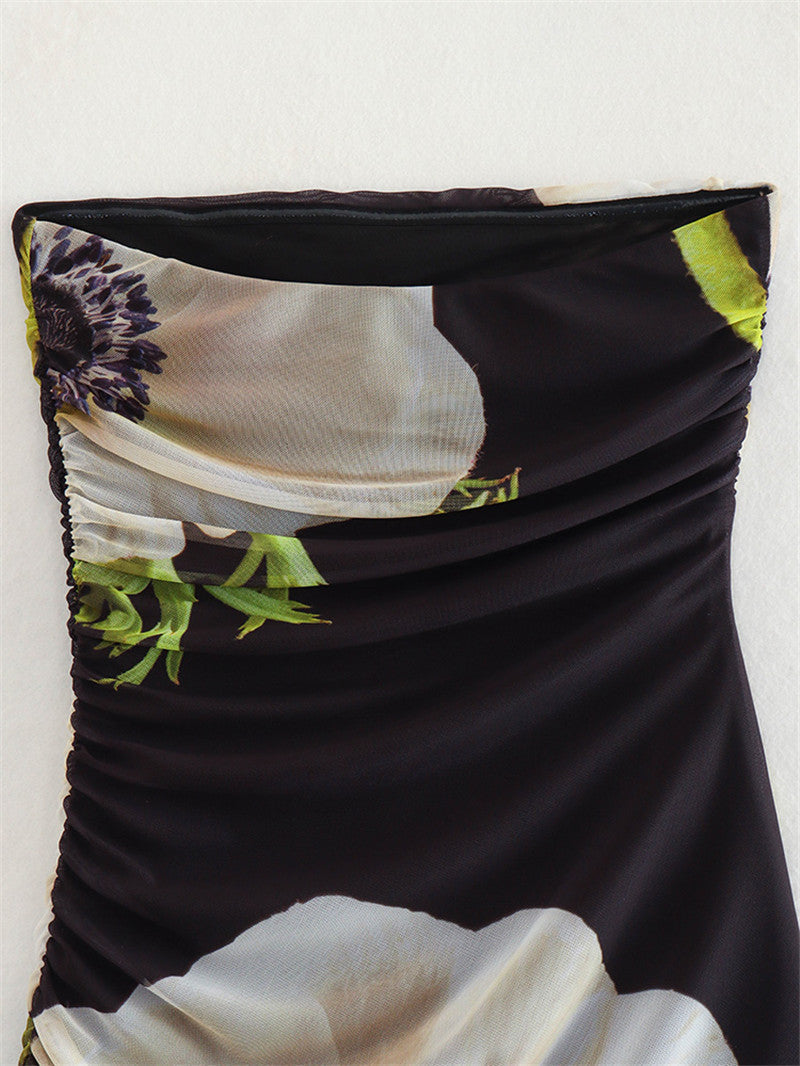 Trendy Strapless Printed Asymmetrical Midi Dress