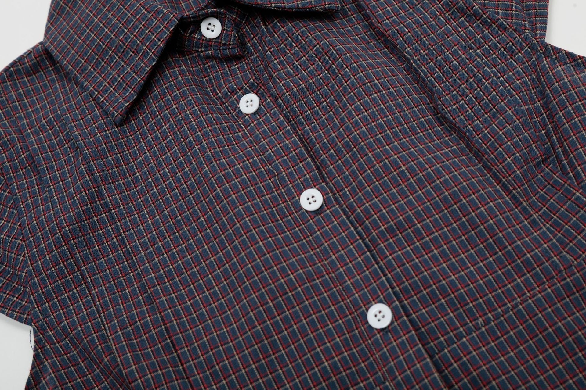 Vintage Lapel Collar Plaid Short Sleeve Top